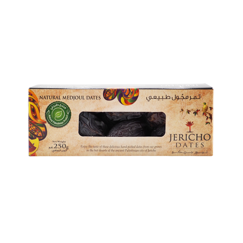 Indulge in the finest Palestinian Medjool dates with the Jericho Natural Medjool Dates 250g box – a perfect balance of flavour, nutrition, and authenticity. Grown in the rich soils of Palestine, these dates are naturally sun-ripened and hand-picked for quality.